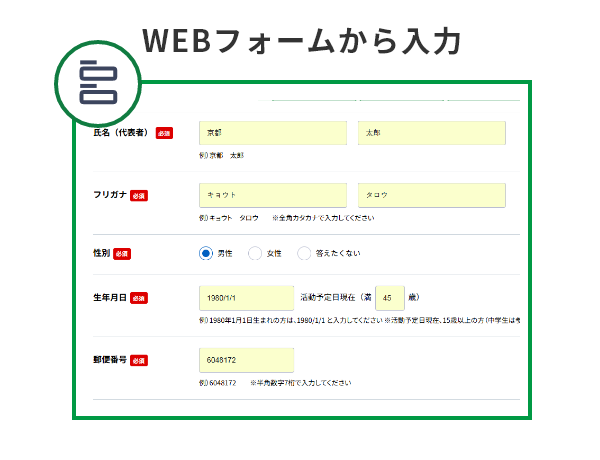 Webフォームから必要事項を入力